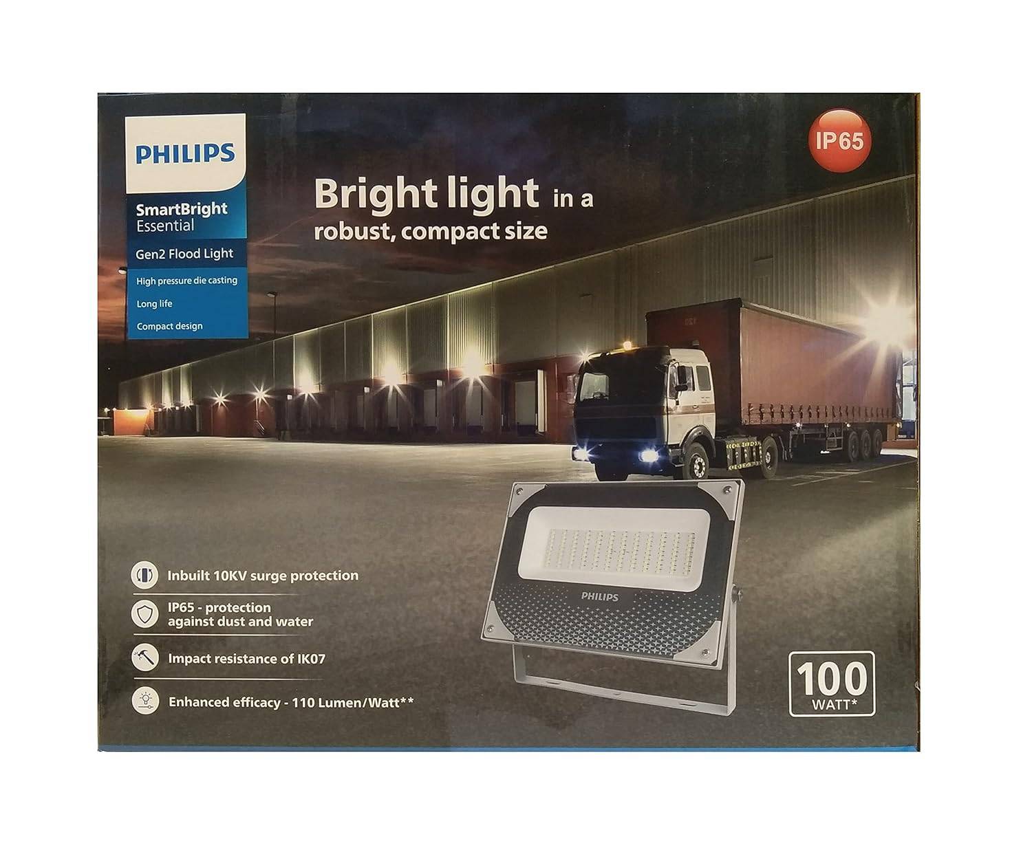 Philips 100W LED Flood Light Cool White 6500K | BVP175 LED110 CW 100W FG GR PSU Led Flood SmartBright Slim | IP65 Outdoor Waterproof Flood Light for Stadiums, Gardens, and Industrial Areas